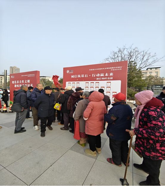 活動聚焦“普及誠信知識、強化誠信意識、踐行誠信理念”目標(biāo),創(chuàng)新采用線下“隨機抽題+現(xiàn)場作答+即時講解”的形式增強體驗感。精心設(shè)置單選題、情景判斷題等題型,內(nèi)容涵蓋誠信相關(guān)法律法規(guī)、社會信用體系建設(shè)政策、經(jīng)典誠信故事、日常誠信行為規(guī)范等多個方面?,F(xiàn)場群眾通過抽號答題、互動競猜的方式,在輕松氛圍中學(xué)習(xí)誠信知識。工作人員對題目中涉及的法律法規(guī)和信用知識進(jìn)行現(xiàn)場解讀,實現(xiàn)知識普及與實踐指導(dǎo)有機結(jié)合。活動根據(jù)題目難易程度,對回答正確的老百姓發(fā)放抽紙、洗衣液、香皂等日常生活用品500余份?;顒蝇F(xiàn)場還配套發(fā)放《誠信建設(shè)宣傳手冊》等資料500余份,幫助群眾進(jìn)一步理解“守信激勵、失信懲戒”的社會信用規(guī)則。